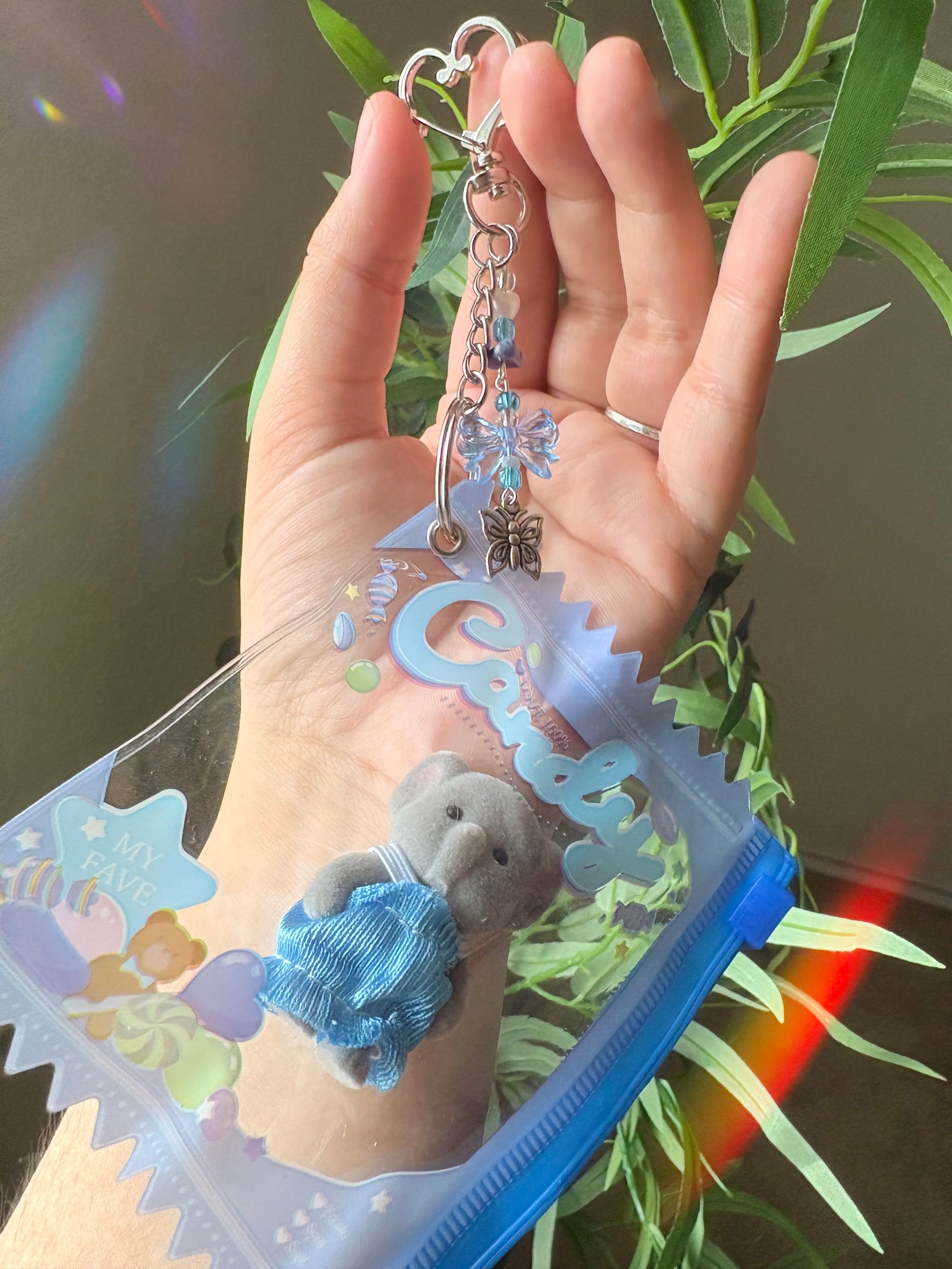 Baby Elephant Blue Candy Bag Beaded Keychain