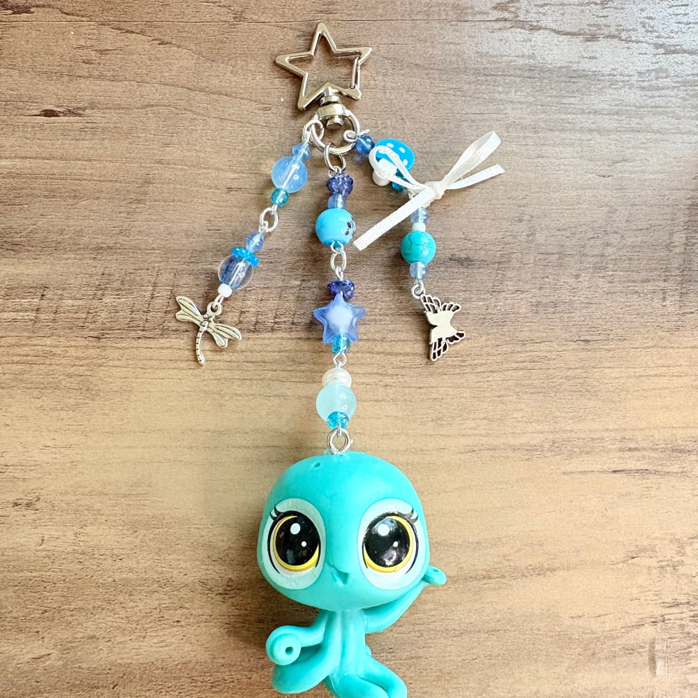Handmade LPS Blue Octopus Keychain: Beaded Charm